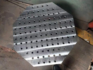 三維八角平臺是三維柔性組合工裝夾具系統的基礎平臺,分為D28和D16兩種。D28系列平臺孔距100mm,平面刻有100X100的網格線,D16系列平臺孔距為50mm,刻有50X50的網格線,方便工件目視檢測。根據用戶要求,在平臺的兩直角邊上面可以刻畫毫米標度尺。