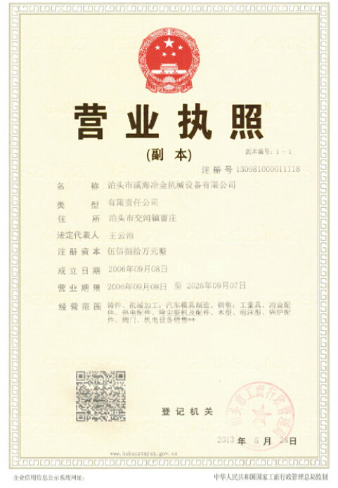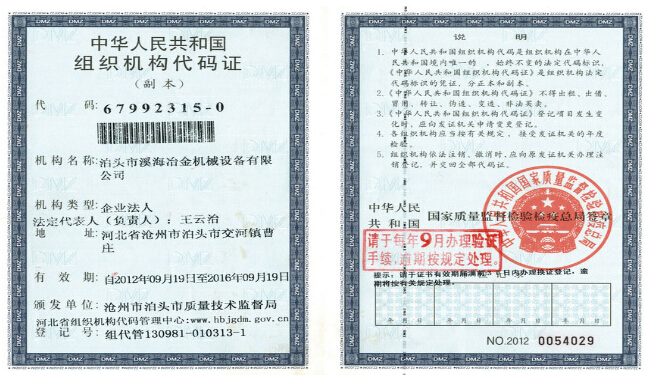 泊頭市溪海冶金機(jī)械設(shè)備有限公司 » 榮譽(yù)資質(zhì)